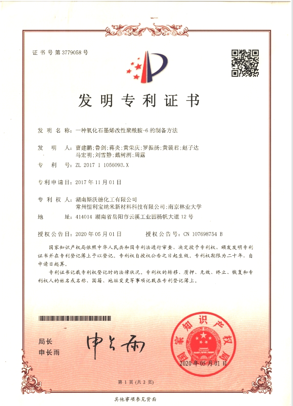 关键词:恒利宝 石墨烯 石墨烯PA6 高分子材料